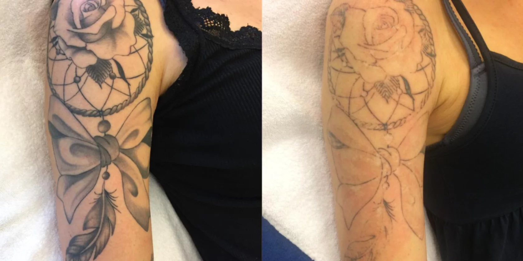 Die folgenden Vorher-Nachher-Bilder zeigen ausgewählte Ergebnisse unserer Tattoo-Entfernung mit modernen Picosekundenlasern (PicoSure® und Cutera enlighten™). Sie geben einen realistischen Einblick in individuelle Behandlungsverläufe und stehen stellvertretend für viele erfolgreich durchgeführte Behandlungen.